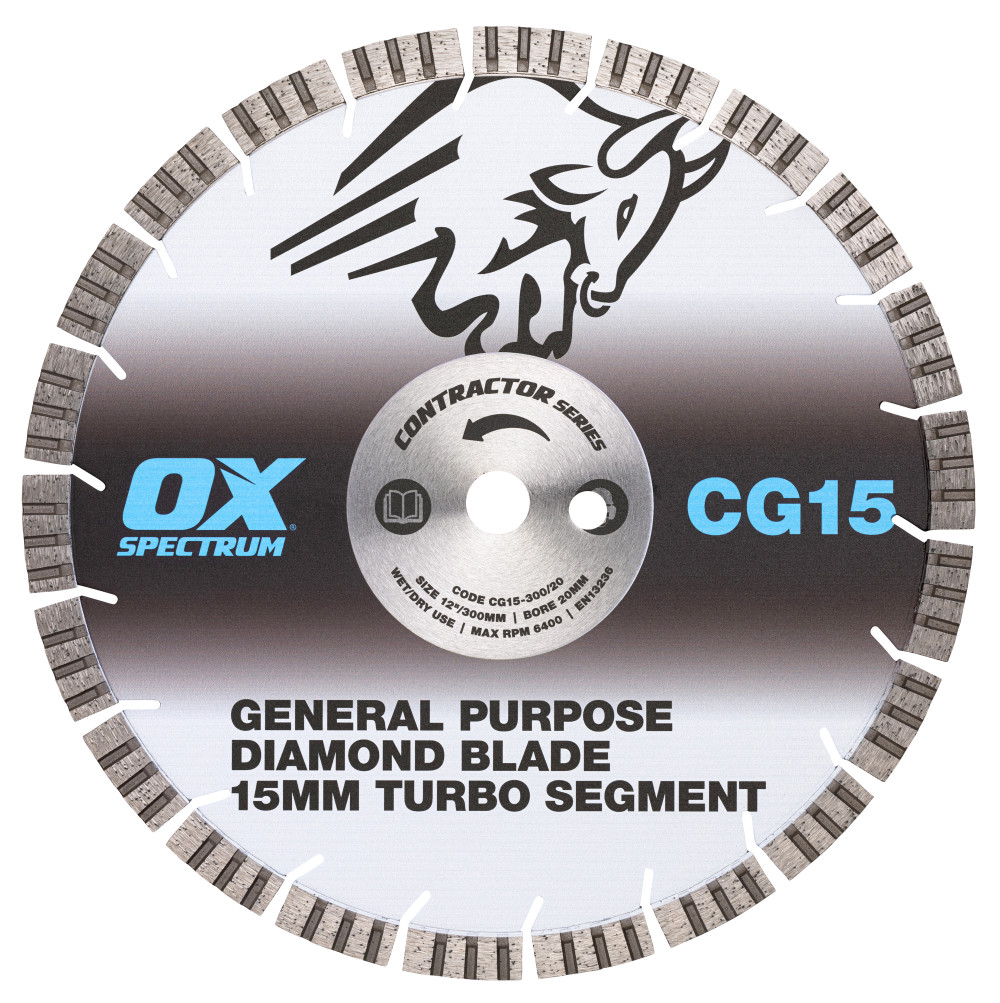 The OX Spectrum Contractor CG15 general purpose diamond Blade is the ideal entry level diamond blade for the cost conscious user. Suitable for most general purpose cutting requirements.