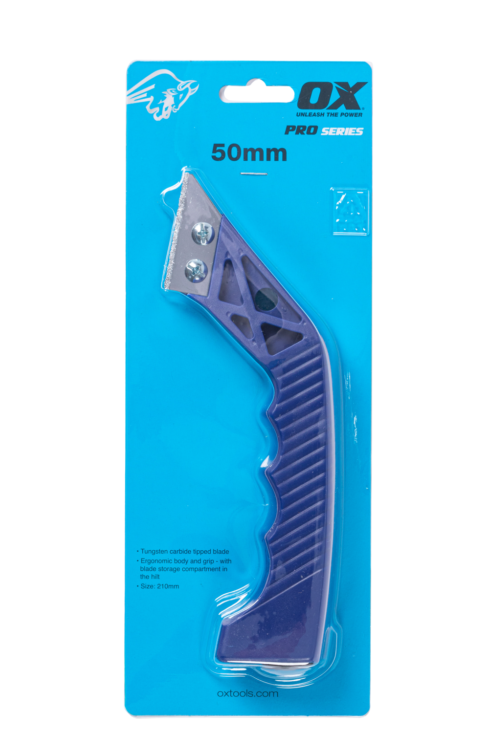 The OX Pro Grout remover comes with a tungsten carbide tipped blade and an ergonomic handle with a built-in blade storage compartment.
