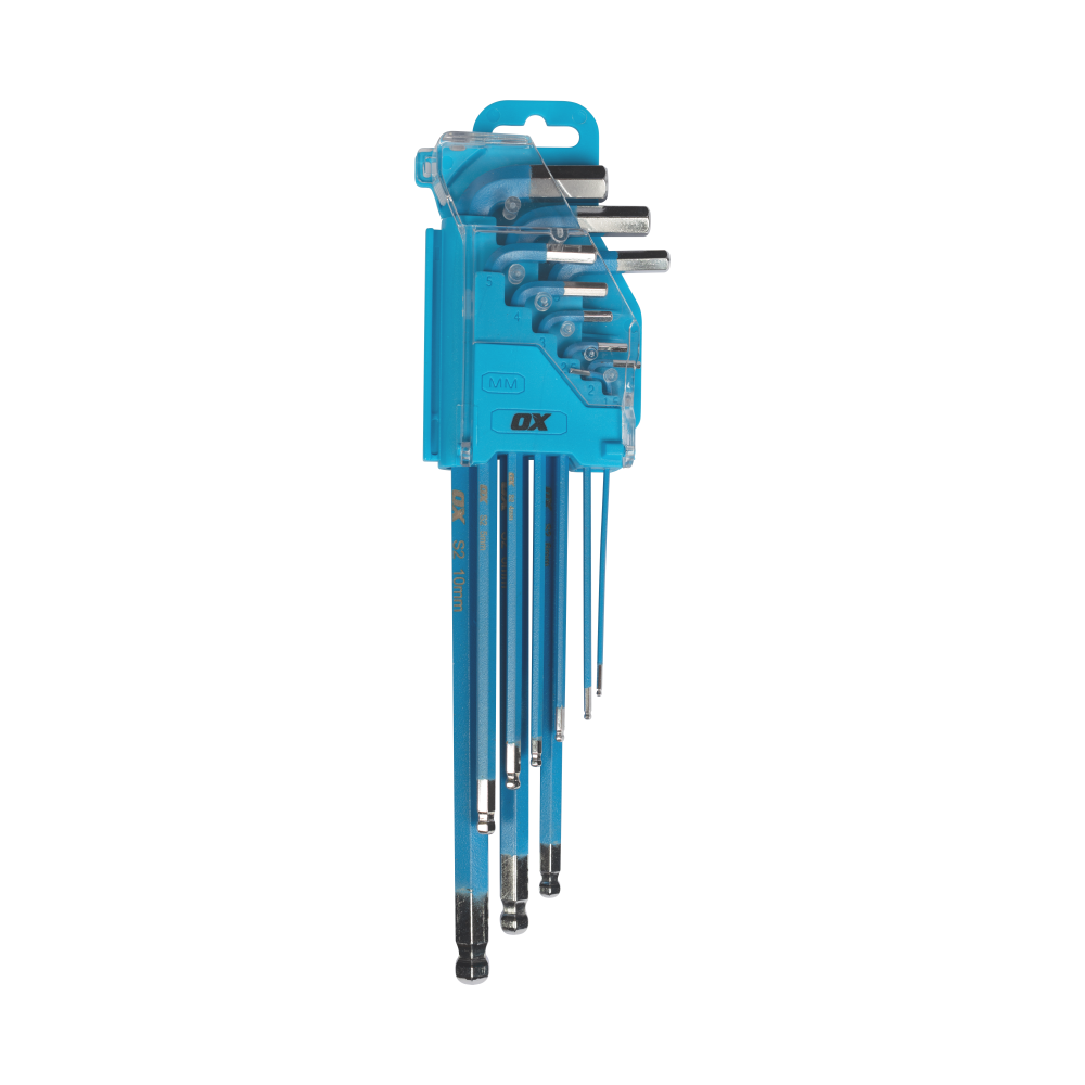 The OX Pro Hex Allen Key Long 9pc Set is built for precision and durability. Featuring a ballpoint tip, it allows a wider range of access to bolt heads, making it ideal for tight spaces. Made from tough S2 steel, this set is engineered to withstand heavy use. A protective coating ensures both the tools and your work surfaces stay in top condition. Choose OX for professional quality.