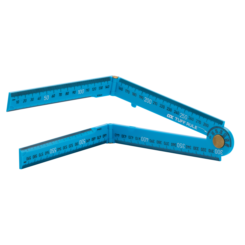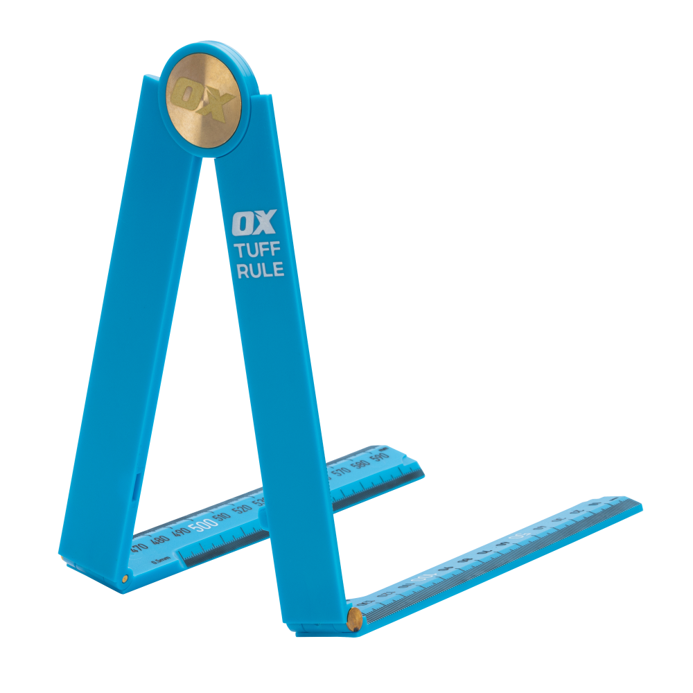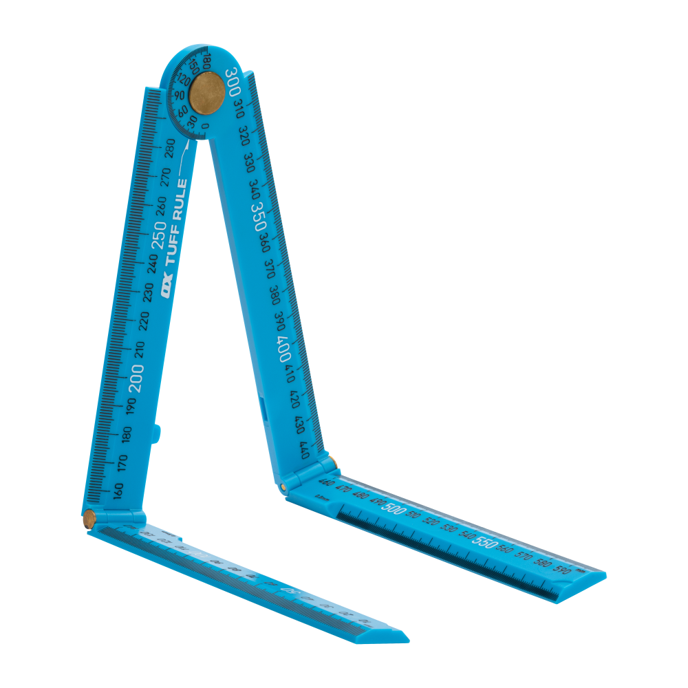 The OX Tuff Rule is a rigid, versatile, and compact metric folding rule and quick angle finder with a practical purpose for everyday construction.