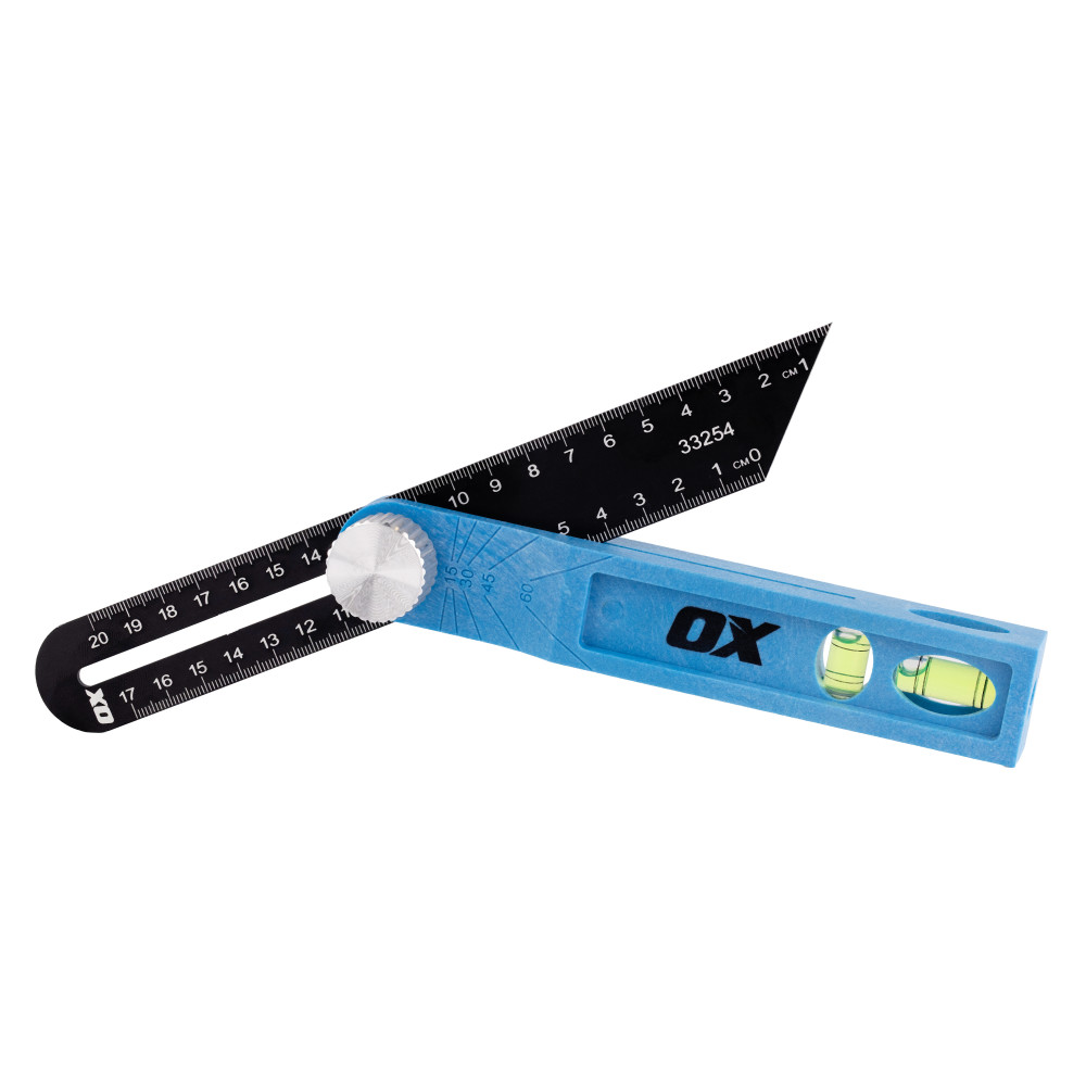 The OX Trade Sliding Bevel is equipped with built-in dual vials, adding a layer of functionality that makes it indispensable for any job site. Whether you are working on intricate carpentry, detailed joinery, or precise metalworking, these vials help you achieve perfectly level and plumb angles every time.