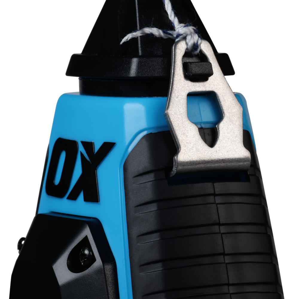 The OX Trade Series Chalk Reel features a durable ABS body with a rubber overmould for enhanced grip and protection. Equipped with a 30m bold line made from a cotton and nylon blend, it ensures precise and durable marking. The integrated hook storage keeps your tool organised, while the 6:1 planetary gears allow for rapid reeling. Designed with a pointed tip for easy corner access, the reel also includes a clutch release and steel crank, making it a reliable tool for any professional contractor.